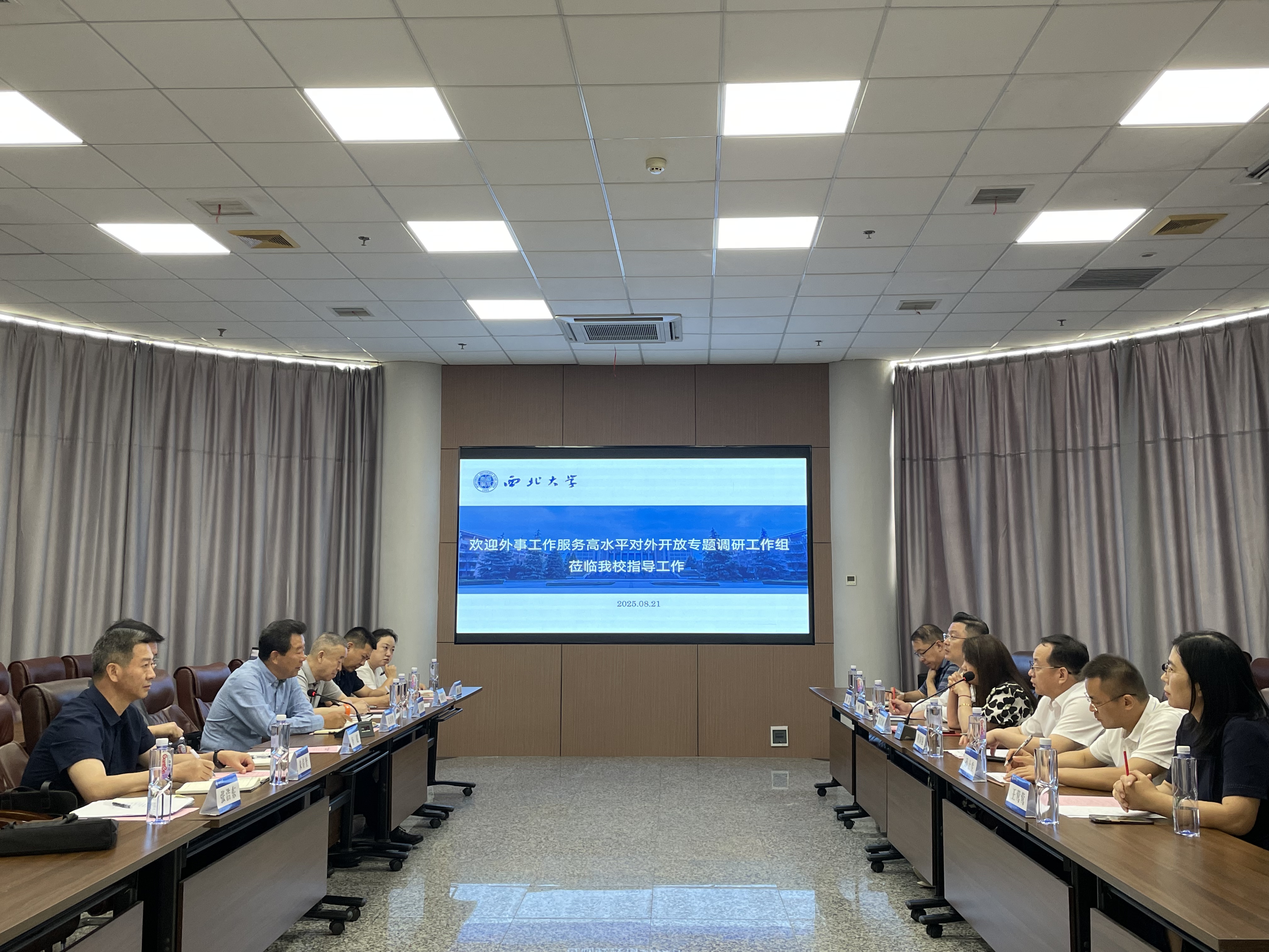 8 月 21 日,陕西省人大常委会委员、民宗侨外工委主任文引学一行来校就外事工作服务高水平对外开放开展专题调研。球速体育·(中国)官方网站QIUSU SPORTS党委常委、副校长范代娣陪同调研并参与座谈,陕西省外办及球速体育·(中国)官方网站QIUSU SPORTS统战部、国际合作部(国际教育学院)、科学技术处、丝绸之路考古合作研究中心相关代表陪同调研并参会。