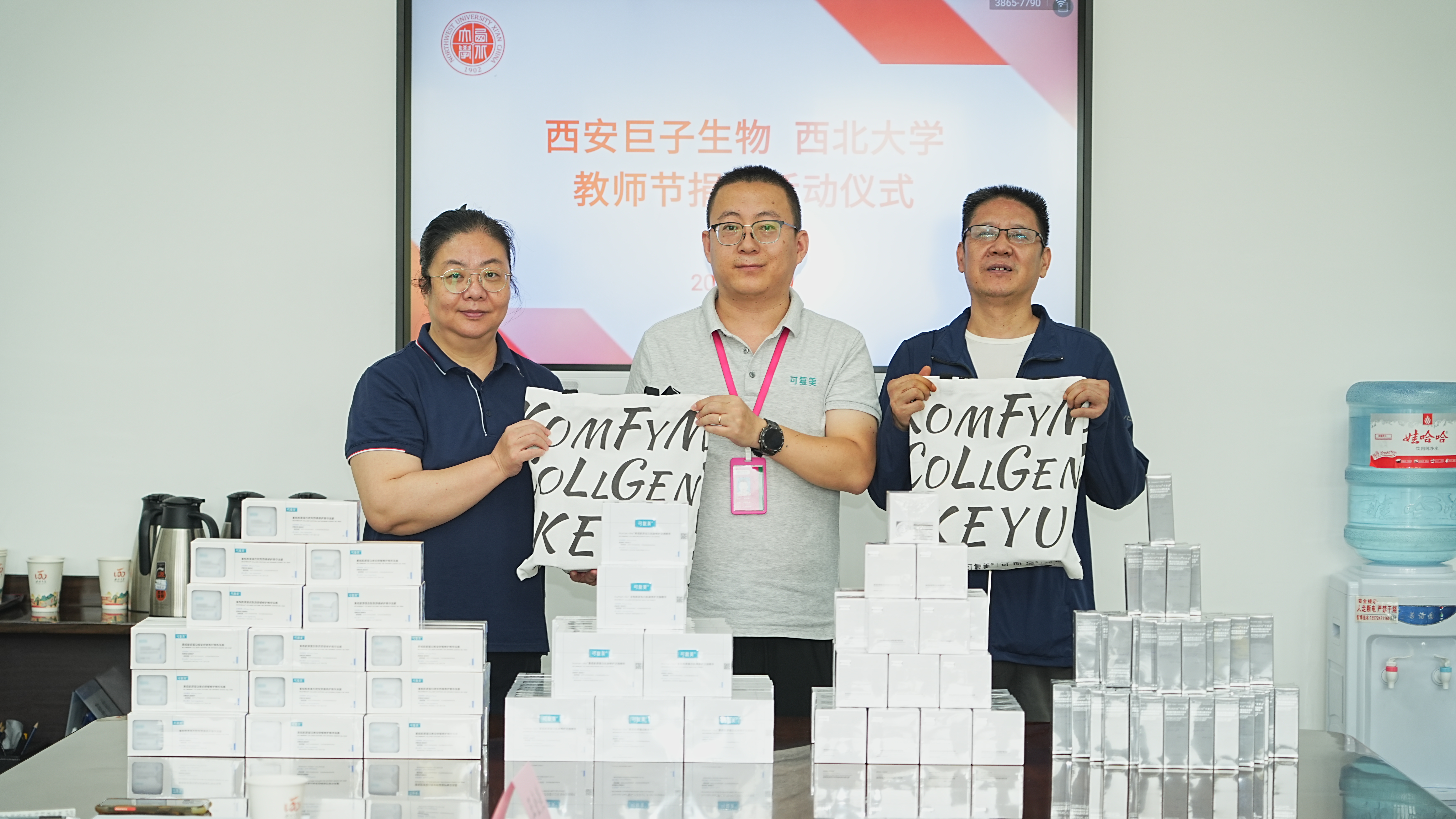 9月9日上午,在第41个教师节来临之际,球速体育·(中国)官方网站QIUSU SPORTS校友企业向学校捐赠可复美、可丽金系列产品,为学校全体教育工作者送来节日祝福与问候。校党委常委、副校长李振海,西安巨子生物基因技术股份有限公司首席财务官张慧娟,西安高新巨子医疗美容诊所院长王艳,西安巨子生物基因技术股份有限公司人事行政主管霍宝玉,国内处、校工会、离退休处负责人参加仪式。