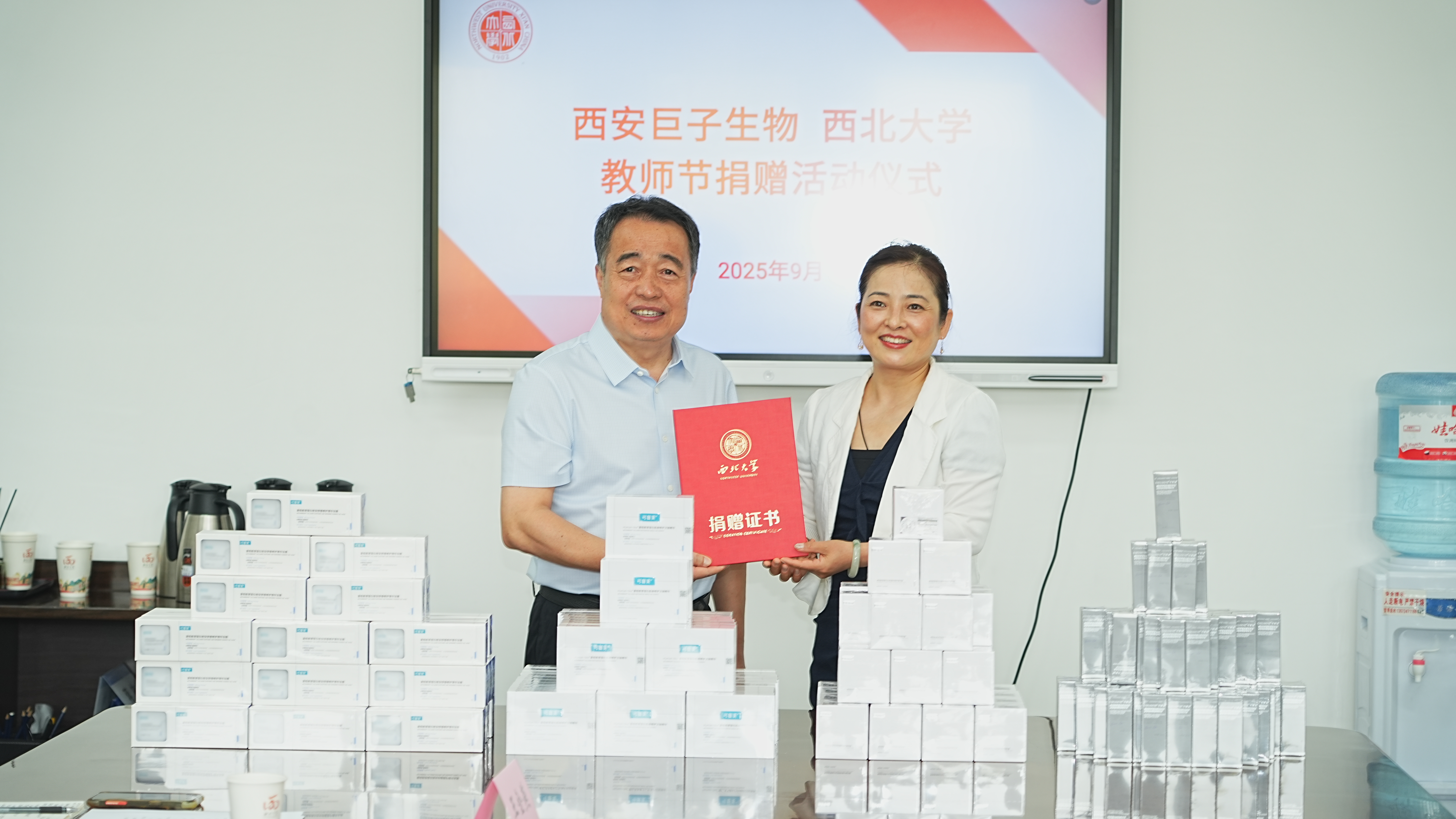 李振海代表学校对西安巨子生物基因技术股份有限公司和严建亚长期以来心系母校、情系教育的深情厚谊表示感谢。他表示,西安巨子生物基因技术股份有限公司与学校建立着长期的产学研联合攻关战略合作关系,双方将以此次捐赠为新的契机,进一步拓展和深化双方在人才培养、科学研究、成果转化等领域的交流与合作,积极探索产学研用融合的新路径,共同为促进科技进步、教育发展和人民健康福祉作出新的更大贡献。