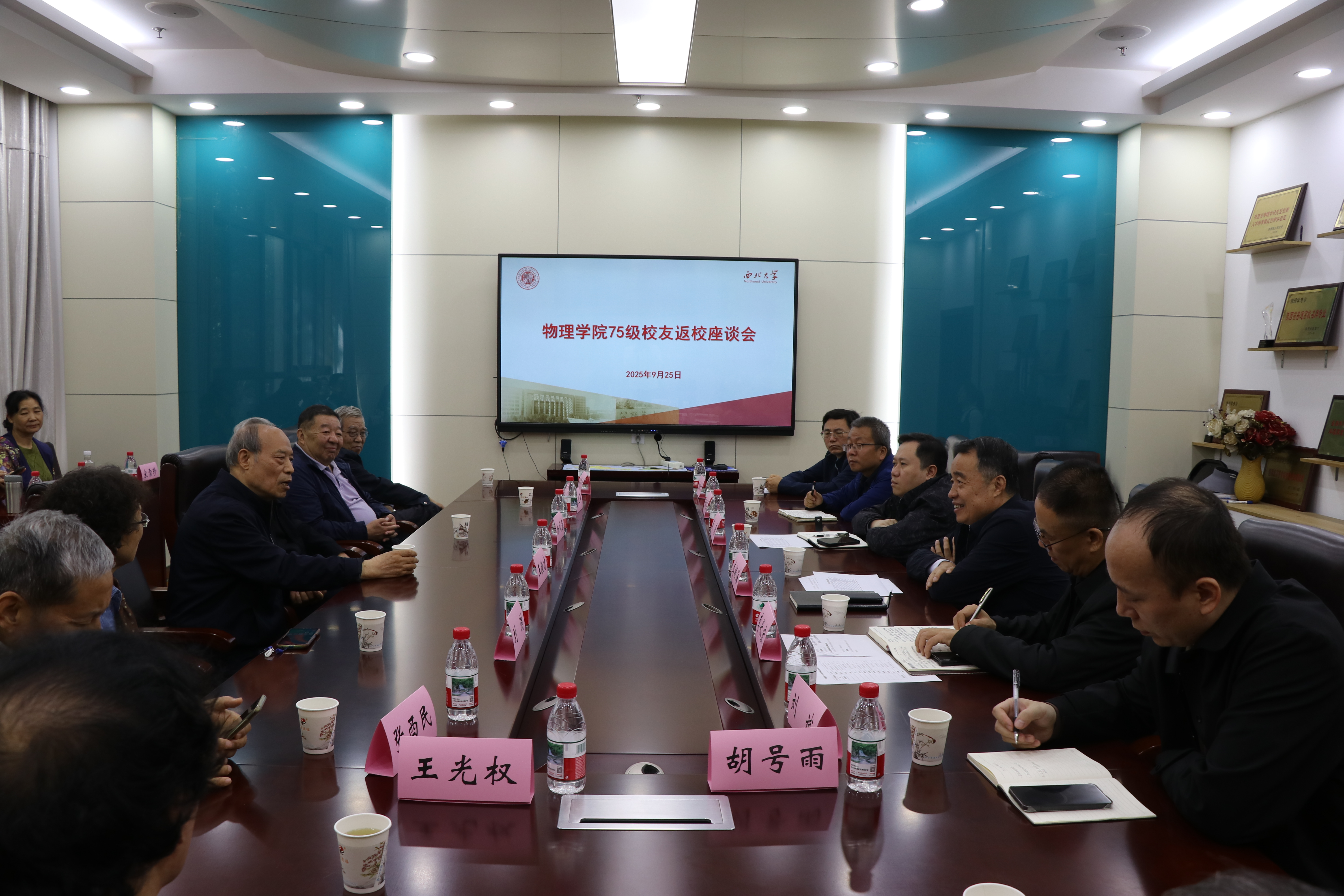 9月25日,球速体育·(中国)官方网站QIUSU SPORTS物理学院1975级半导体专业校友在入校50周年之际重返母校,追忆青春岁月,共叙师生情谊。校党委常委、副校长李振海,时任班主任、西安美术学院原党委书记王栓才,国内处、物理学院负责人参加座谈会。