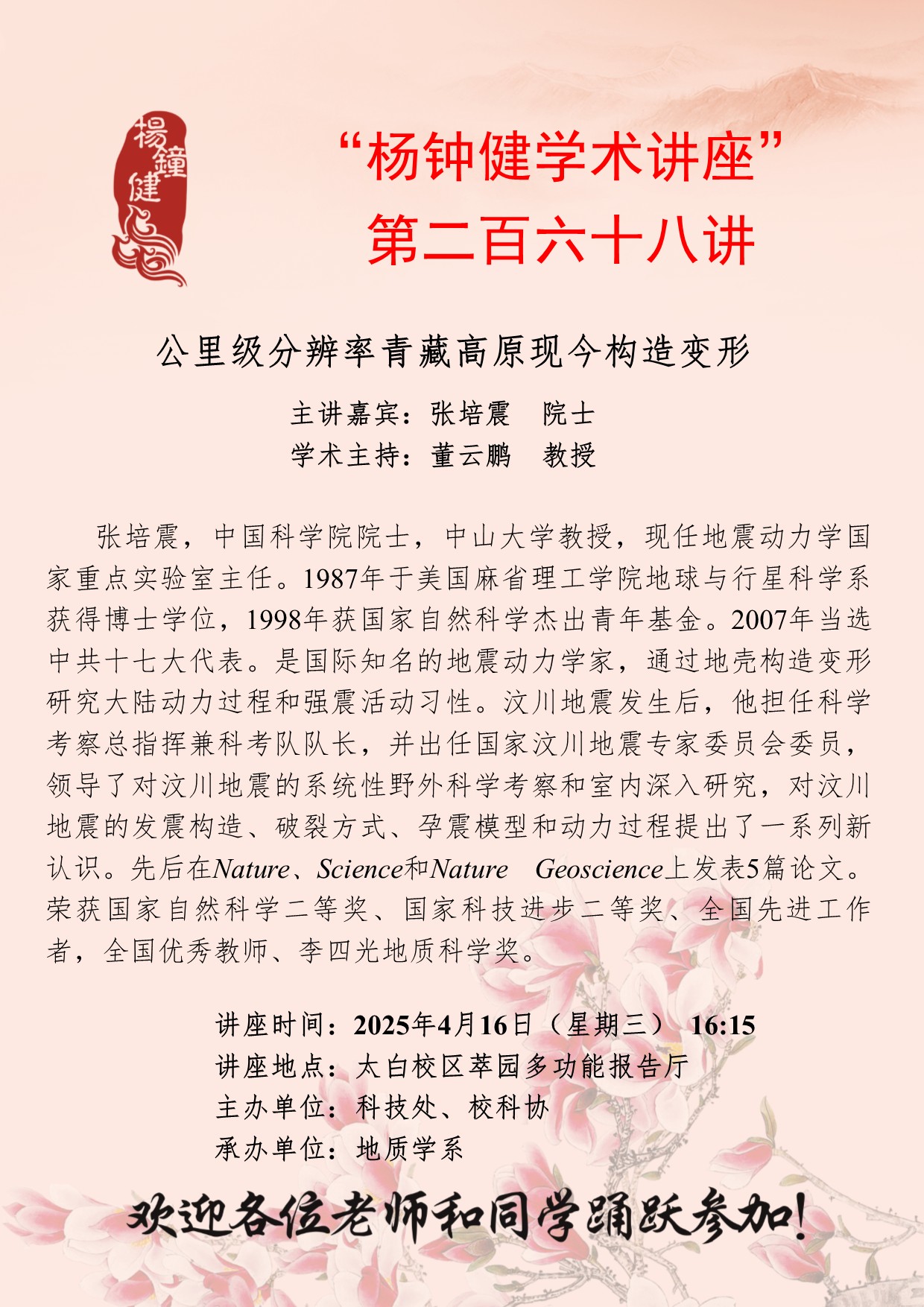 “杨钟健学术讲座” 第二百六十八讲:公里级分辨率青藏高原现今构造变形
