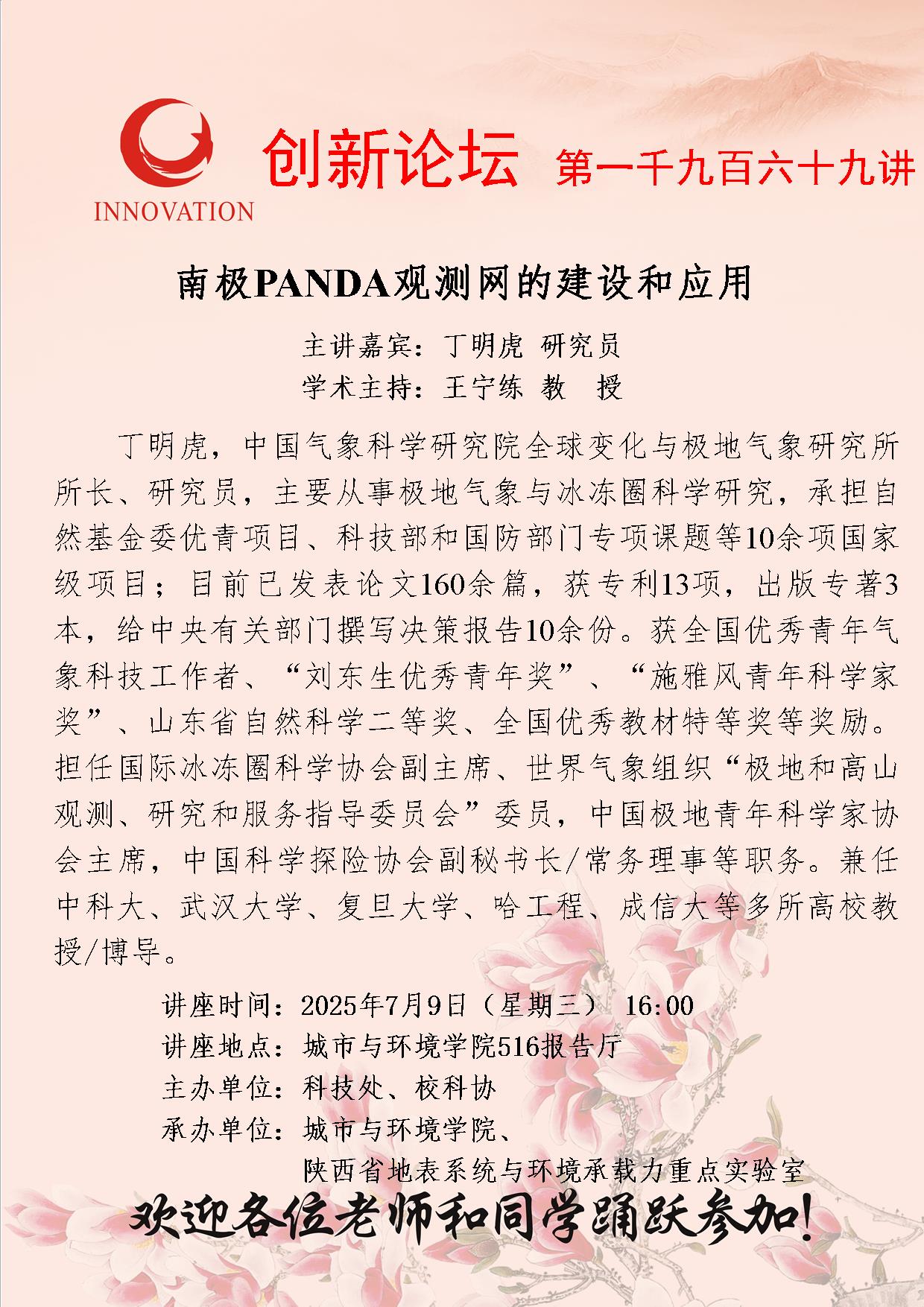 丁明虎 研究员 球速体育·(中国)官方网站QIUSU SPORTS创新论坛第一千九百六十九讲:南极PANDA观测网的建设和应用 讲座时间 2025年7月9日(星期三) 16:00 讲座地点 城市与环境学院516报告厅 讲座人介绍 丁明虎 研究员 讲座内容