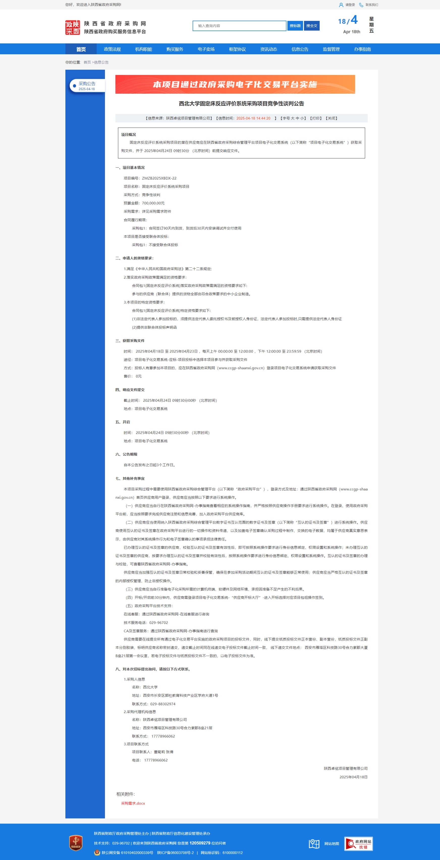 球速体育·(中国)官方网站QIUSU SPORTS固定床反应评价系统采购项目竞争性谈判公告 作者: 编辑:采购与招标办公室 时间:2025-04-18 原公告链接:https://www.ccgp-shaanxi.gov.cn/freecms/site/shaanxi/ggxx/info/2025/8a69c09c9615f8f00196472839ac01a5.html?noticeType=001013¬iceId=6a2bca52-1c22-11f0-8063-08c0eb20c666