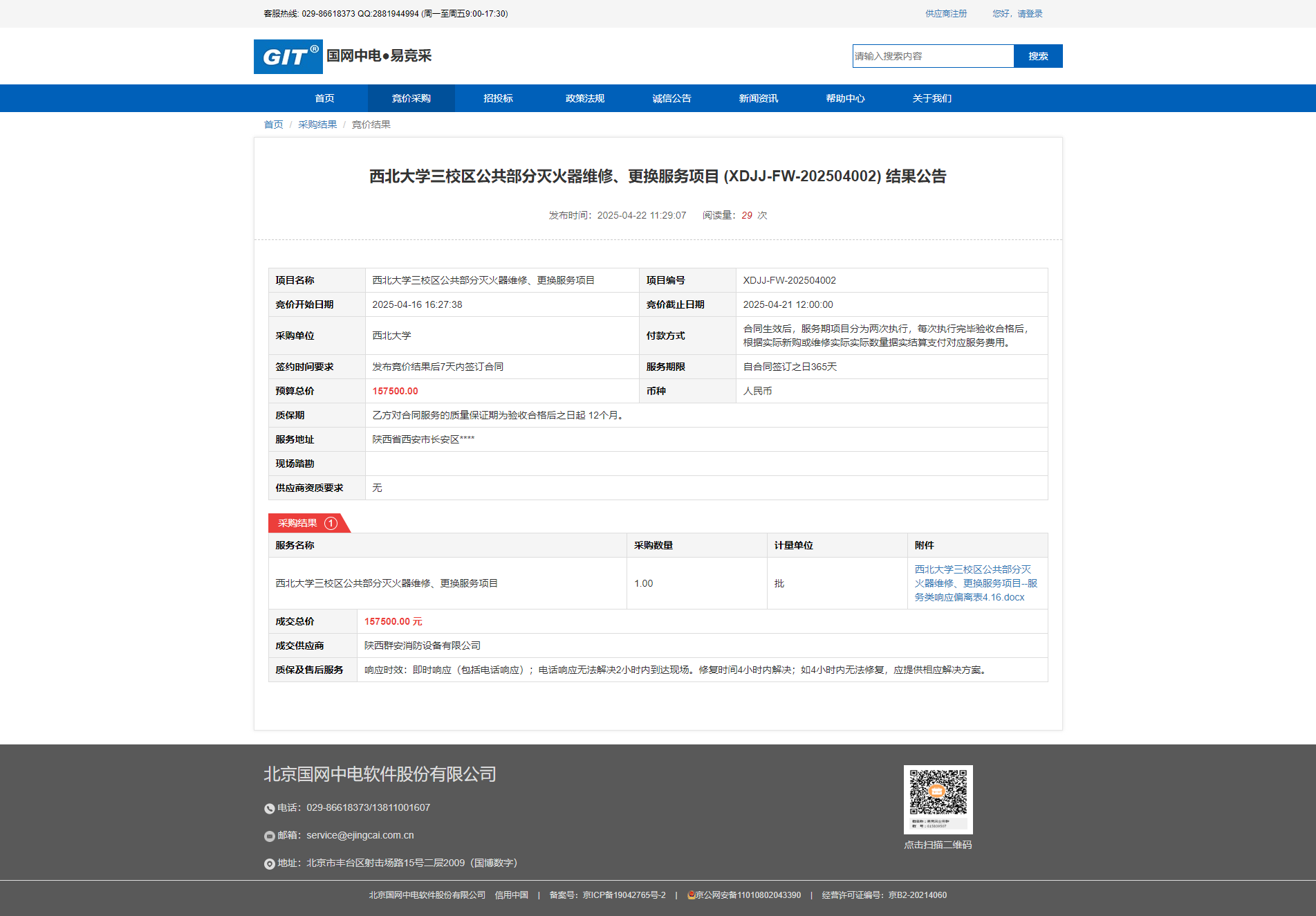 球速体育·(中国)官方网站QIUSU SPORTS三校区公共部分灭火器维修、更换服务项目 (XDJJ-FW-202504002) 结果公告 作者:采购与招标办公室 编辑:张旭龙 时间:2025-04-22 原链接地址