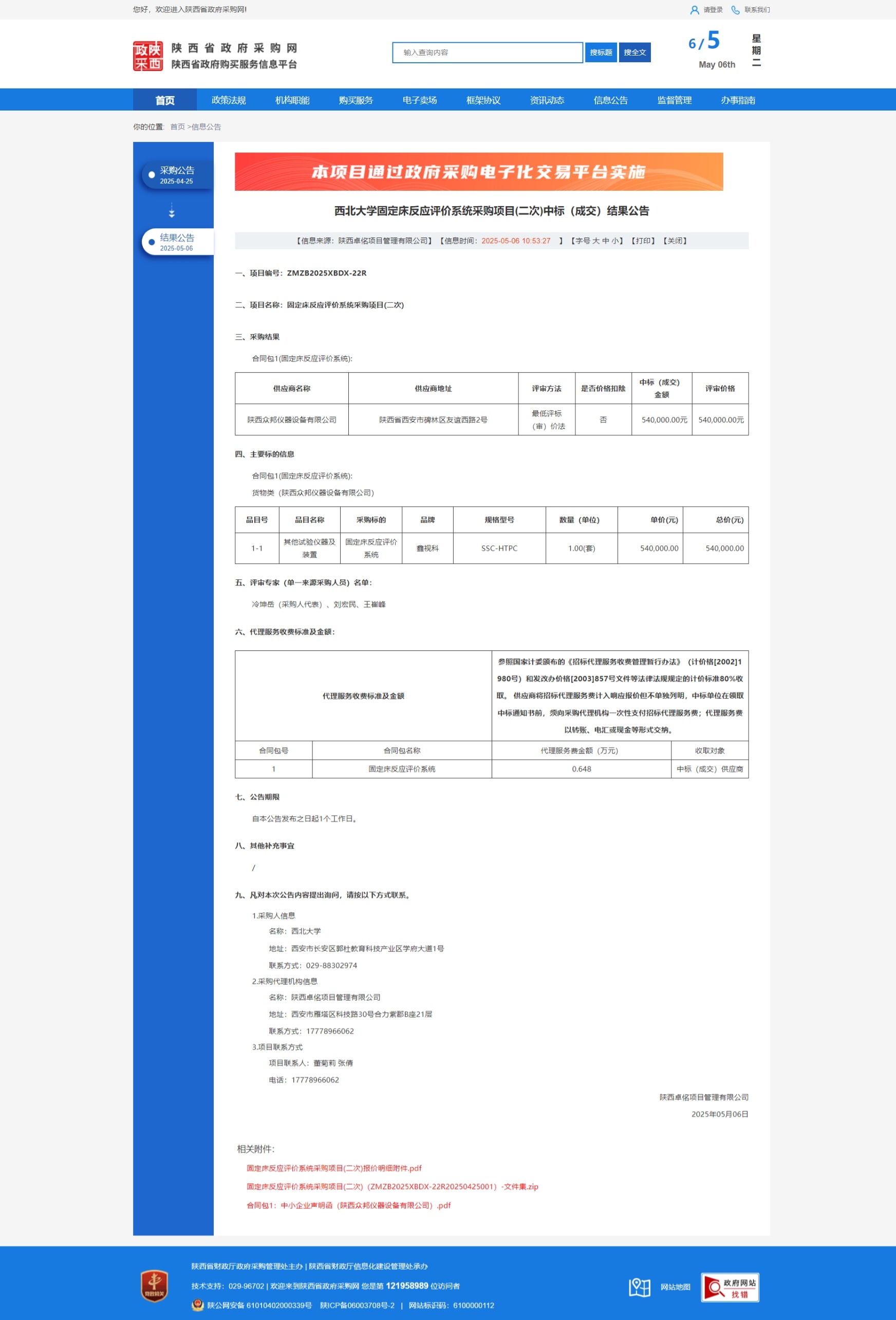 球速体育·(中国)官方网站QIUSU SPORTS固定床反应评价系统采购项目(二次)中标(成交)结果公告 作者: 编辑:采购与招标办公室 时间:2025-05-06 原公告链接:https://www.ccgp-shaanxi.gov.cn/freecms/site/shaanxi/ggxx/info/2025/8a69c0a2967206000196a355be75555d.html?noticeType=001023¬iceId=2cacf8fa-2a27-11f0-8063-08c0eb20c666
