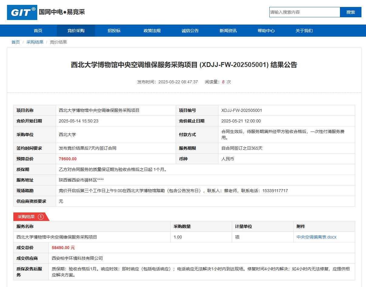 球速体育·(中国)官方网站QIUSU SPORTS博物馆中央空调维保服务采购项目(XDJJ-FW-202505001)竞价结果公告 作者:采购与招标办公室 编辑: 时间:2025-05-22 原公告链接:https://www.ejingcai.com.cn/site/bidding/detail/18384