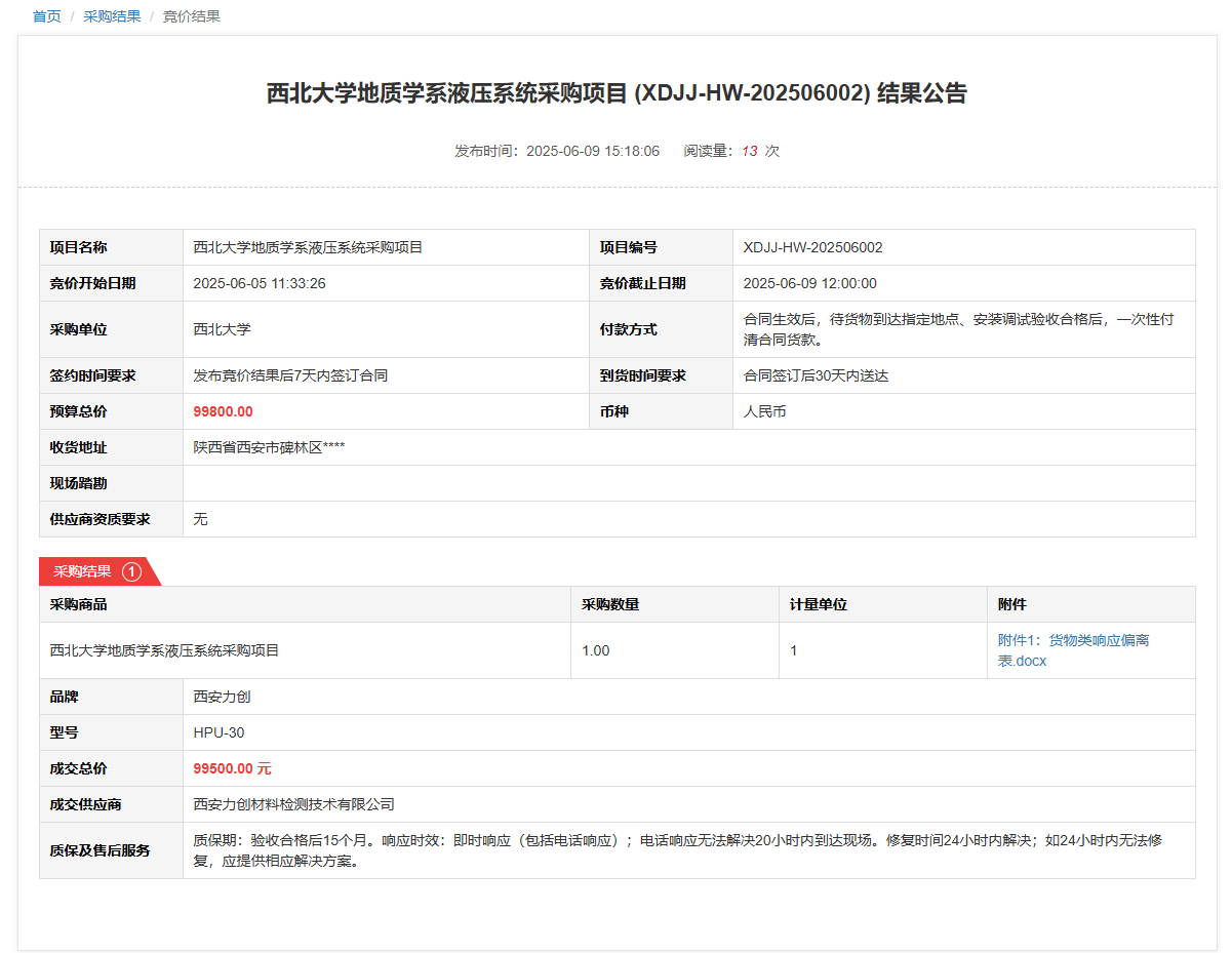 球速体育·(中国)官方网站QIUSU SPORTS地质学系液压系统采购项目(XDJJ-HW-202506002)竞价结果公告 作者:采购与招标办公室 编辑: 时间:2025-06-09 原公告链接:https://www.ejingcai.com.cn/site/bidding/detail/18744