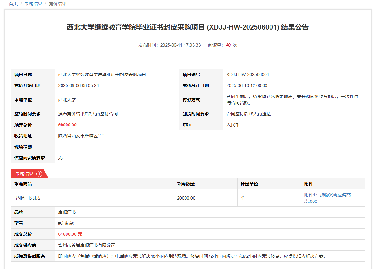 球速体育·(中国)官方网站QIUSU SPORTS继续教育学院毕业证书封皮采购项目(XDJJ-HW-202506001)竞价结果公告 作者:采购与招标办公室 编辑: 时间:2025-06-12 原公告链接:https://www.ejingcai.com.cn/site/bidding/detail/18846