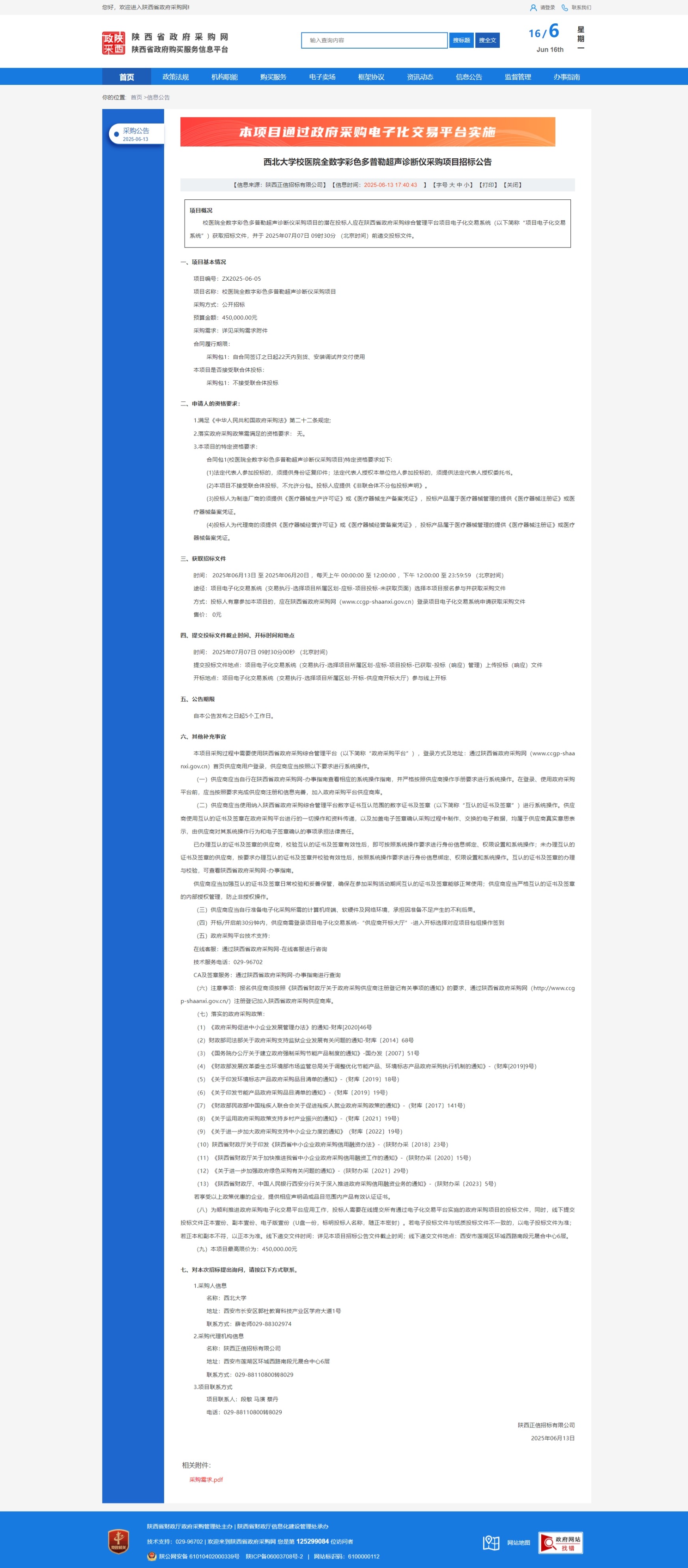 球速体育·(中国)官方网站QIUSU SPORTS校医院全数字彩色多普勒超声诊断仪采购项目招标公告 作者: 编辑:采购与招标办公室 时间:2025-06-16 原公告链接:https://www.ccgp-shaanxi.gov.cn/freecms/site/shaanxi/ggxx/info/2025/8a69c6749714a43701976892e3823fce.html?noticeType=001011¬iceId=6edbc741-483c-11f0-8063-08c0eb20c666