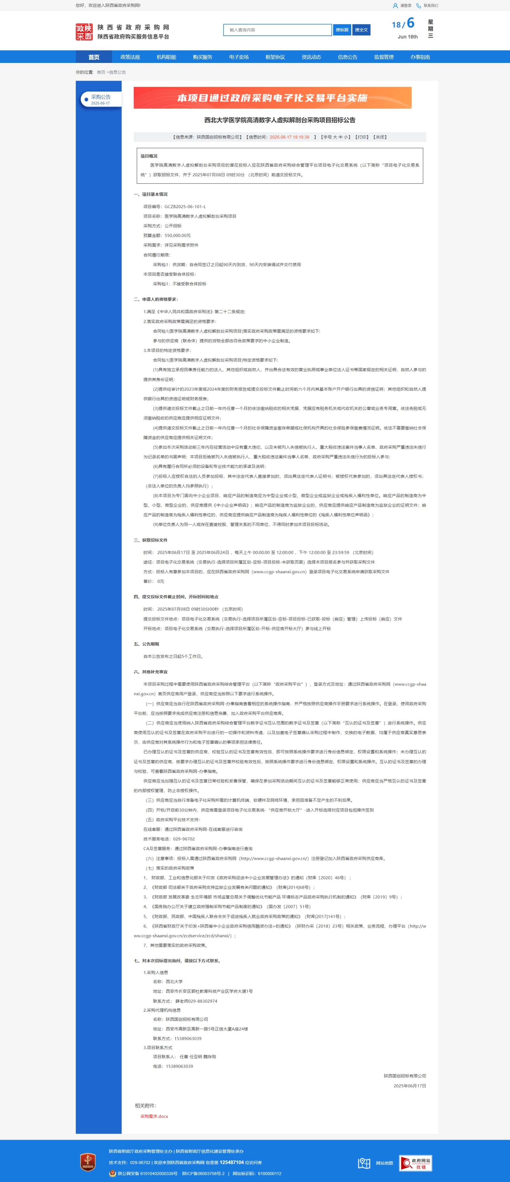 球速体育·(中国)官方网站QIUSU SPORTS医学院高清数字人虚拟解剖台采购项目招标公告 作者: 编辑:采购与招标办公室 时间:2025-06-18 原公告链接:https://www.ccgp-shaanxi.gov.cn/freecms/site/shaanxi/ggxx/info/2025/8a69c0a29672060001977d5b25b77c33.html?noticeType=001011¬iceId=8a96e29e-4b66-11f0-8063-08c0eb20c666