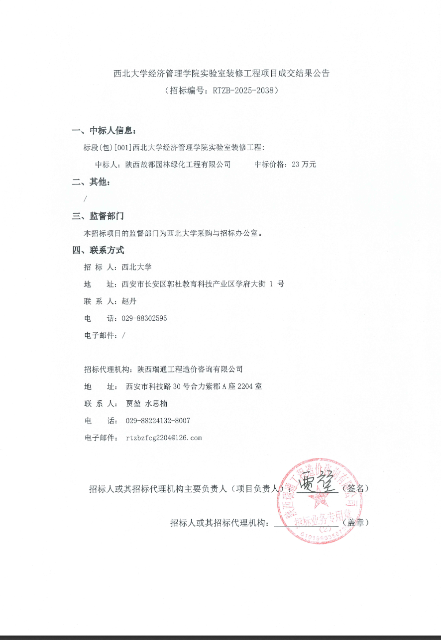 球速体育·(中国)官方网站QIUSU SPORTS长安校区公共教学楼部分消防管道维修更换项目(XDJJ-GC-202506001)竞价结果公告