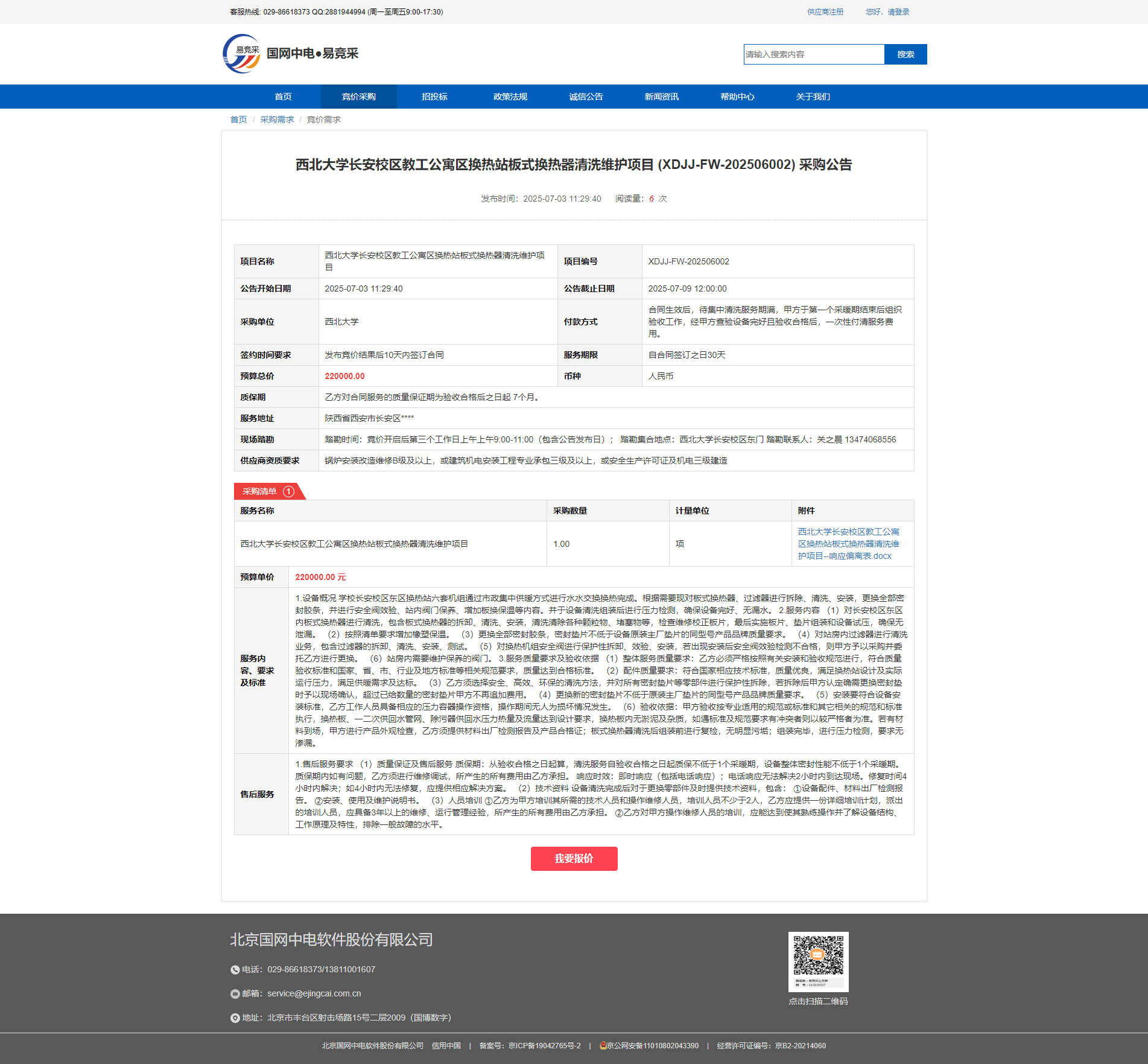 球速体育·(中国)官方网站QIUSU SPORTS长安校区教工公寓区换热站板式换热器清洗维护项目 (XDJJ-FW-202506002) 采购公告 作者:采购与招标办公室 编辑:张旭龙 时间:2025-07-03 原链接地址