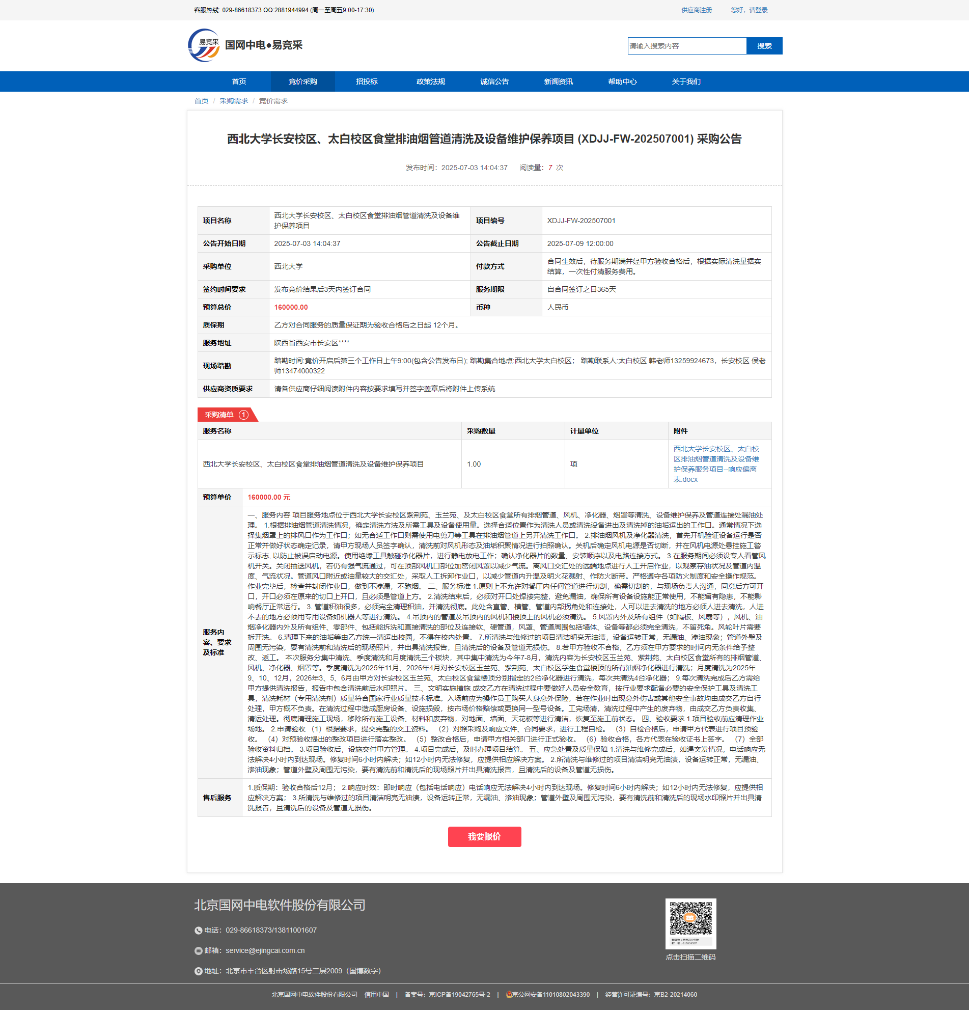 球速体育·(中国)官方网站QIUSU SPORTS长安校区、太白校区食堂排油烟管道清洗及设备维护保养项目 (XDJJ-FW-202507001) 采购公告 作者:采购与招标办公室 编辑:张旭龙 时间:2025-07-03 原链接地址