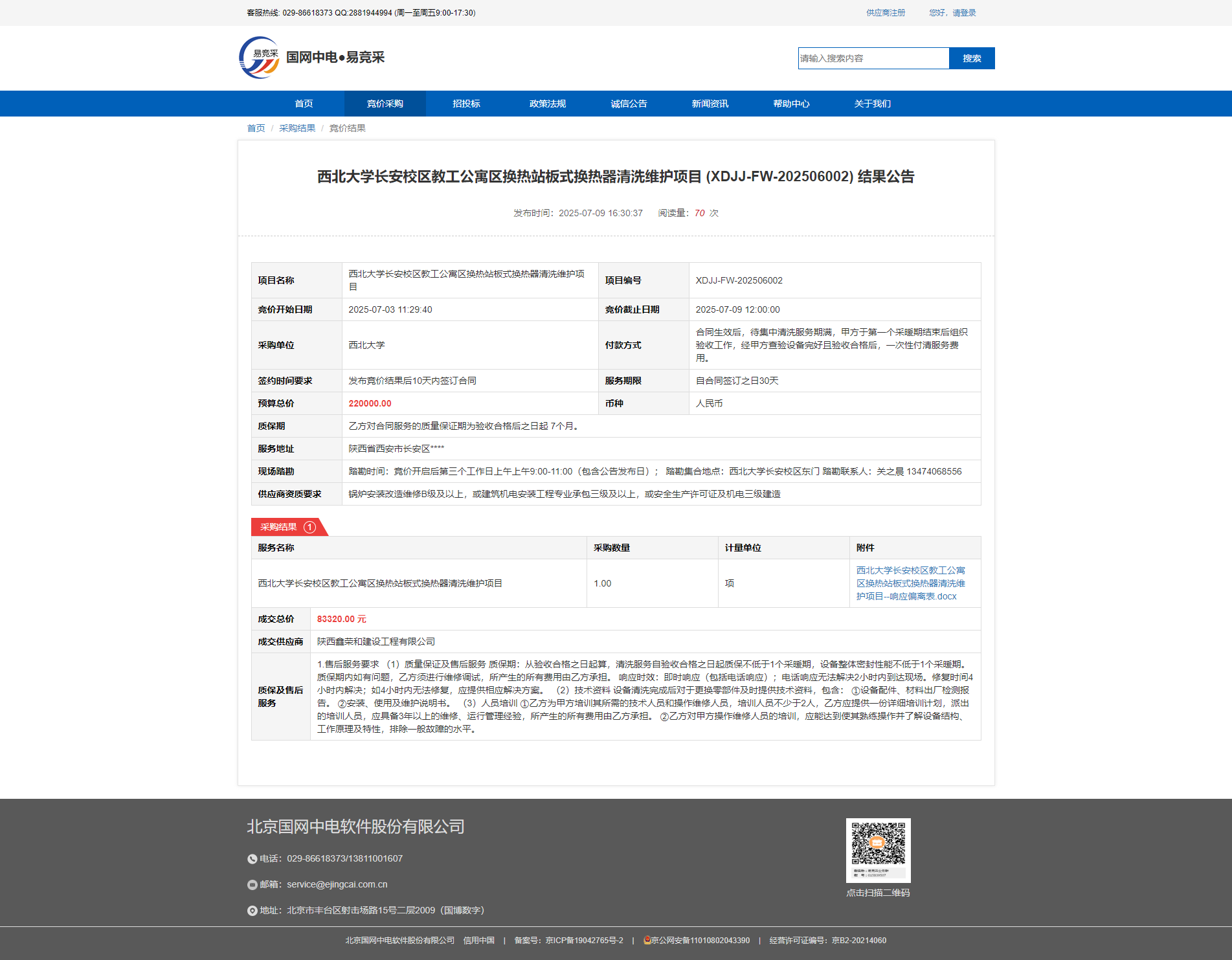 球速体育·(中国)官方网站QIUSU SPORTS长安校区教工公寓区换热站板式换热器清洗维护项目 (XDJJ-FW-202506002) 结果公告 作者:采购与招标办公室 编辑:张旭龙 时间:2025-07-10 原链接地址