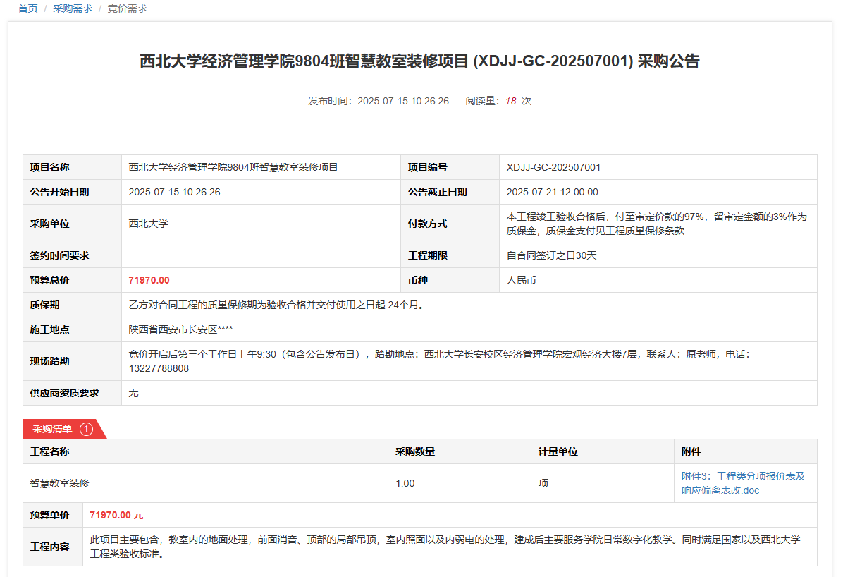 球速体育·(中国)官方网站QIUSU SPORTS经济管理学院9804班智慧教室装修项目(XDJJ-GC-202507001)竞价采购公告 作者:采购与招标办公室 编辑: 时间:2025-07-15 原公告链接