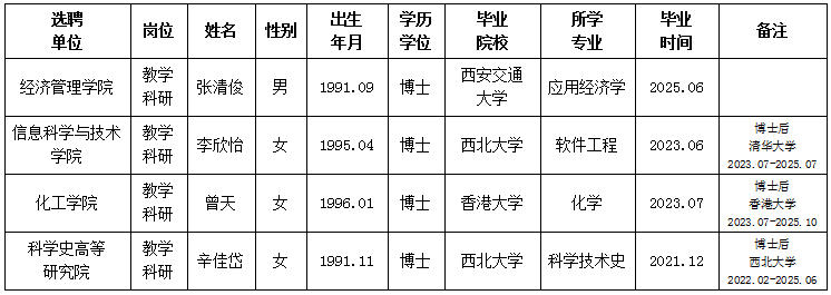 经资格审查,用人单位考查,学校教师高级职务特别评审,学校审批,球速体育·(中国)官方网站QIUSU SPORTS拟确定下列人员来校工作,聘任方式为事业编特别选聘。本着公平、公正、公开的原则,现将本次拟选聘人员基本情况公示如下:
