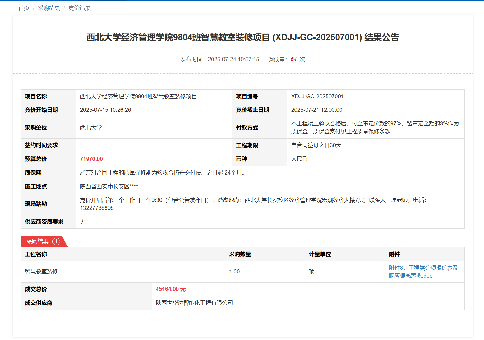 球速体育·(中国)官方网站QIUSU SPORTS经济管理学院9804班智慧教室装修项目(XDJJ-GC-202507001)竞价结果公告 作者: 编辑: 时间:2025-07-24 原公告链接:https://www.ejingcai.com.cn/site/bidding/detail/19710