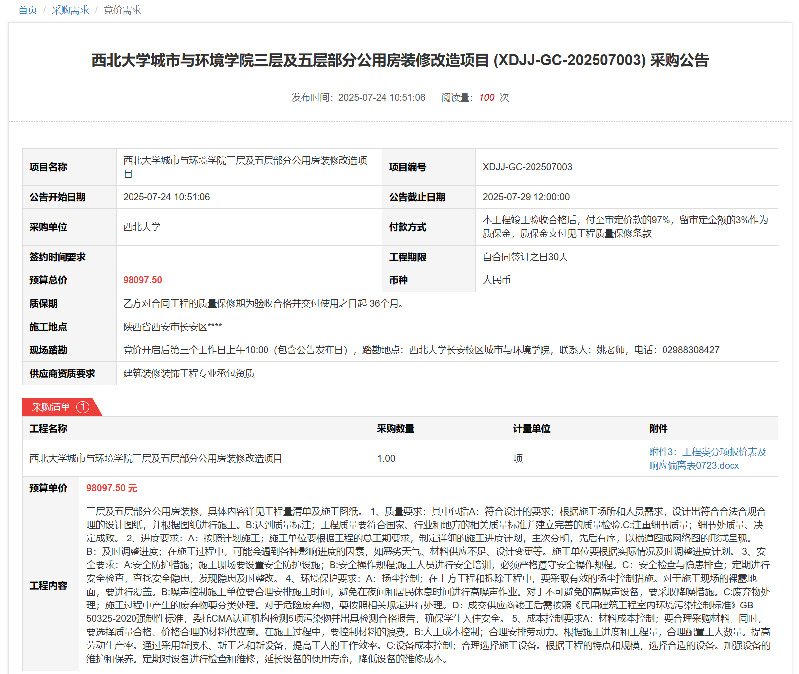 球速体育·(中国)官方网站QIUSU SPORTS城市与环境学院三层及五层部分公用房装修改造项目(XDJJ-GC-202507003)竞价采购公告 作者:采购与招标办公室 编辑: 时间:2025-07-24 原公告链接:https://www.ejingcai.com.cn/site/bidding/detail/19707