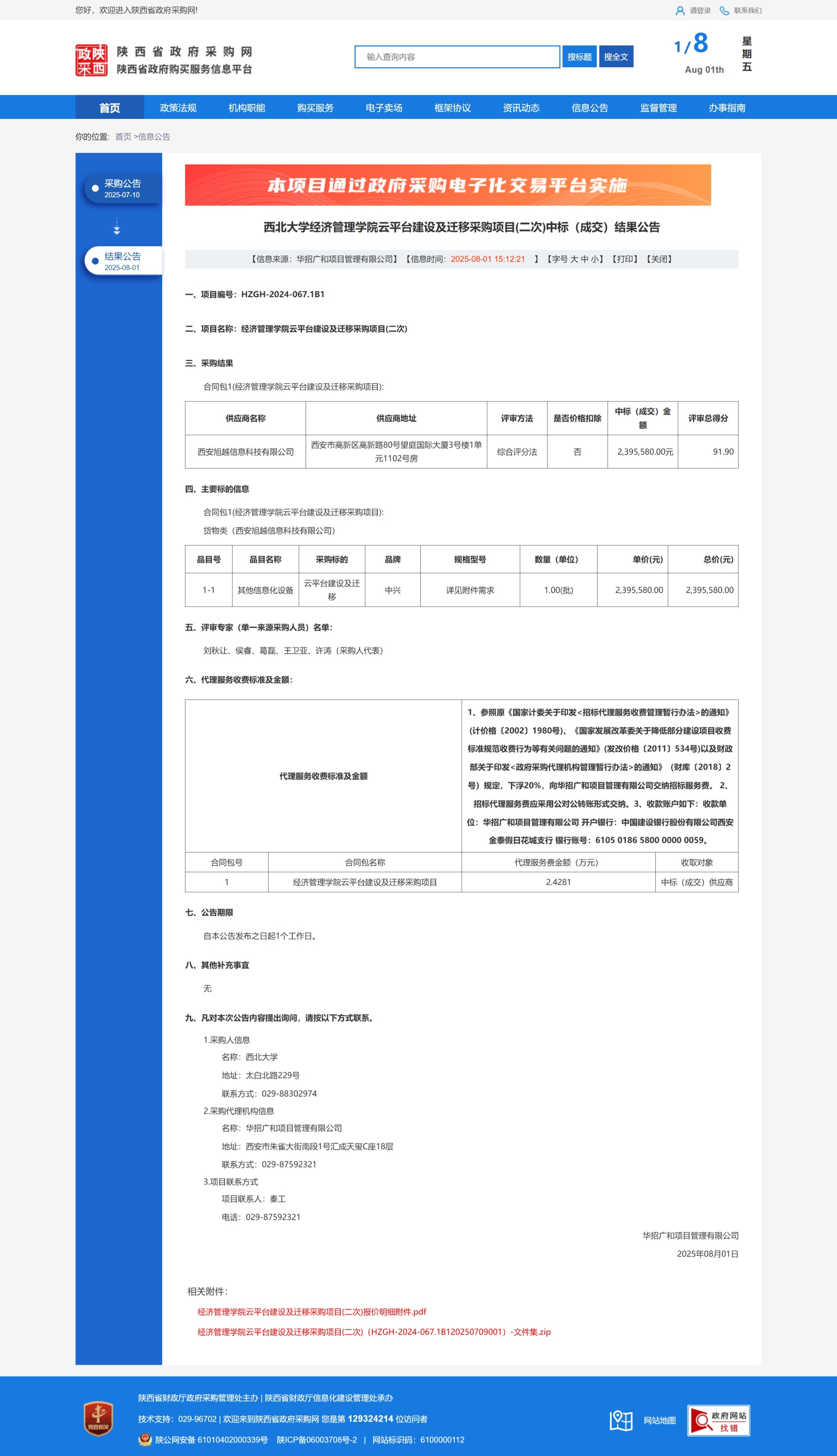 球速体育·(中国)官方网站QIUSU SPORTS经济管理学院云平台建设及迁移采购项目(二次)中标(成交)结果公告 作者: 编辑:采购与招标办公室 时间:2025-08-01 原公告链接:https://www.ccgp-shaanxi.gov.cn/freecms/site/shaanxi/ggxx/info/2025/8a69c6959860f2ce01986101532605f6.html?noticeType=001021¬iceId=e8cedee8-6ea8-11f0-8063-08c0eb20c666