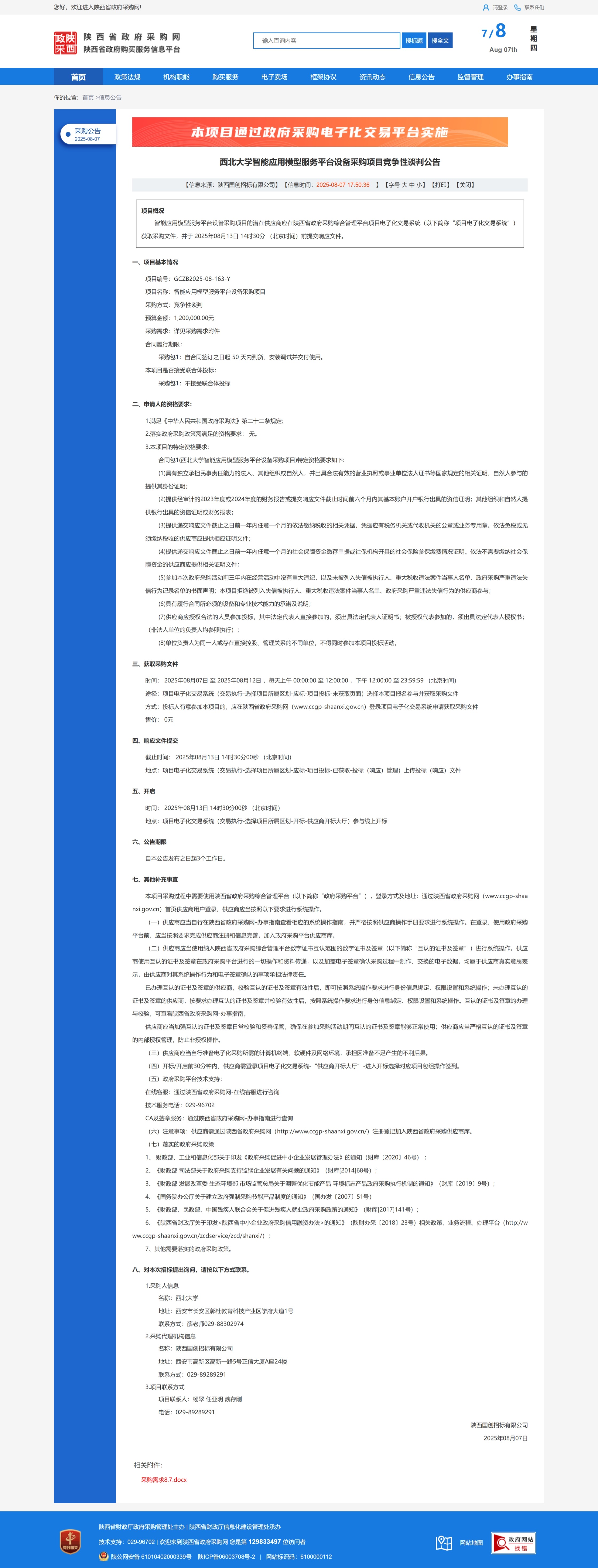 球速体育·(中国)官方网站QIUSU SPORTS智能应用模型服务平台设备采购项目竞争性谈判公告 作者: 编辑:薛利娟 时间:2025-08-07 原公告链接:https://www.ccgp-shaanxi.gov.cn/freecms/site/shaanxi/ggxx/info/2025/8a69c1e29860ef6f019883d28fa93451.html?noticeType=001013¬iceId=056ac348-7376-11f0-8063-08c0eb20c666