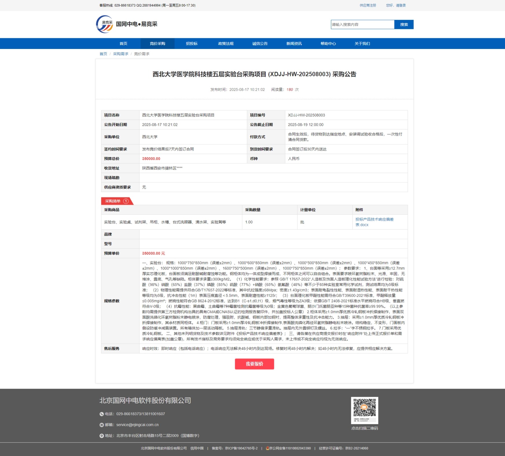 球速体育·(中国)官方网站QIUSU SPORTS医学院科技楼五层实验台采购项目 (XDJJ-HW-202508003)竞价 采购公告 作者: 编辑:采购与招标办公室 时间:2025-08-18 原公告链接:https://www.ejingcai.com.cn/site/bidding/detail/19996