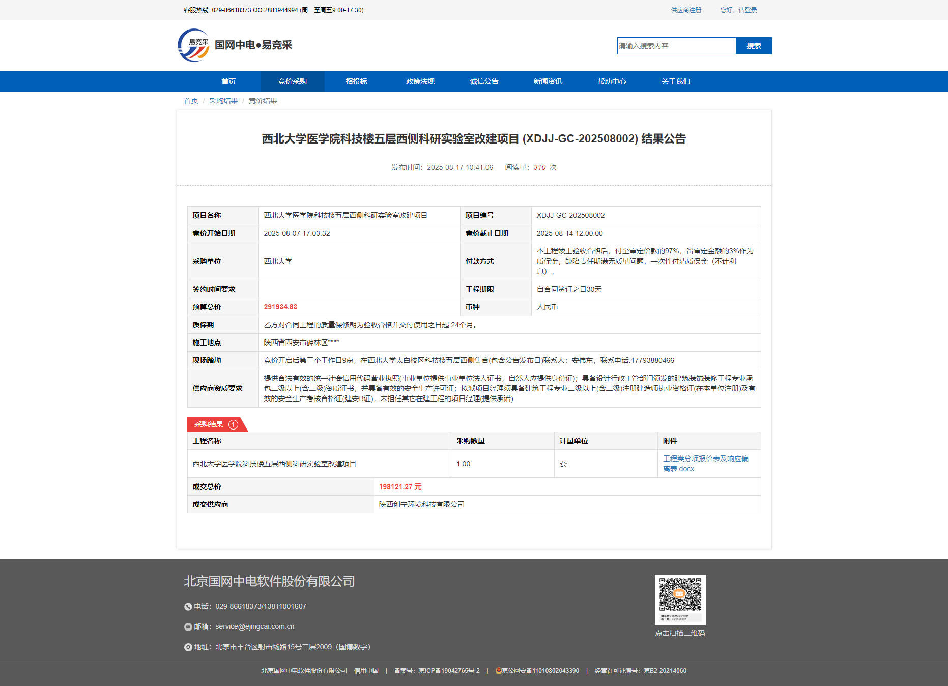 球速体育·(中国)官方网站QIUSU SPORTS医学院科技楼五层西侧科研实验室改建项目 (XDJJ-GC-202508002) 结果公告 作者:国有资产管理处 编辑:赵丹 时间:2025-08-17 原文链接