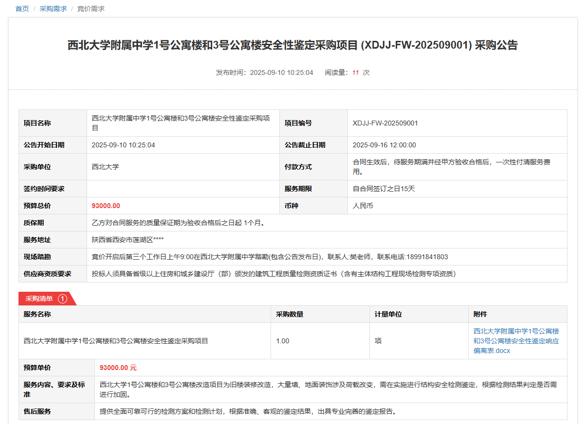 球速体育·(中国)官方网站QIUSU SPORTS附属中学1号公寓楼和3号公寓楼安全性鉴定采购项目(XDJJ-FW-202509001)竞价采购公告 作者:国有资产管理处 编辑: 时间:2025-09-10 原公告链接