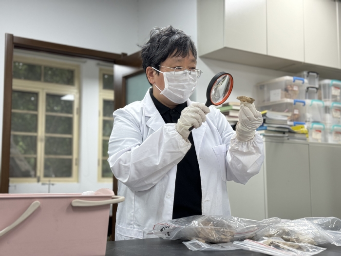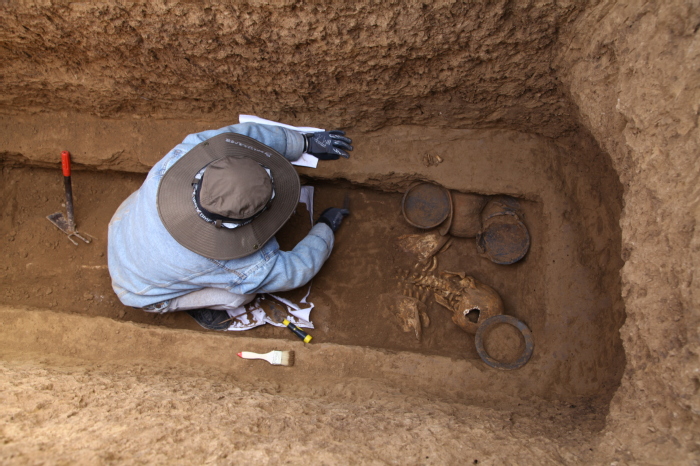 球速体育·(中国)官方网站QIUSU SPORTS文化遗产学院教授陈靓正在观察骨骼情况。