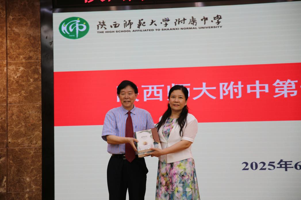 报告尾声,惊喜不断。舒德干为陕师大附中和聆听报告的同学赠送了团队翻译出版的《物种起源》图书和“昆明鱼”“生命起源树”等文化创意纪念品,承载着知识与文化的礼物让同学们爱不释手。随后,陕师大附中副校长张元芳郑重地向舒院士颁发学生生涯导师聘书,现场掌声雷动,将气氛推向高潮。