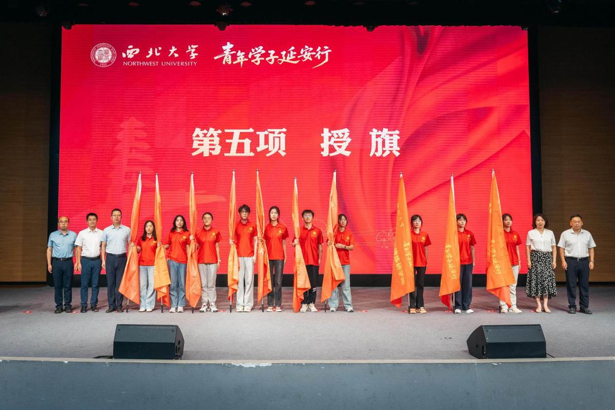 活动中,蒋林和与会部门负责人为“球速体育·(中国)官方网站QIUSU SPORTS青年学子延安行”研学团和10个班级代表授旗。