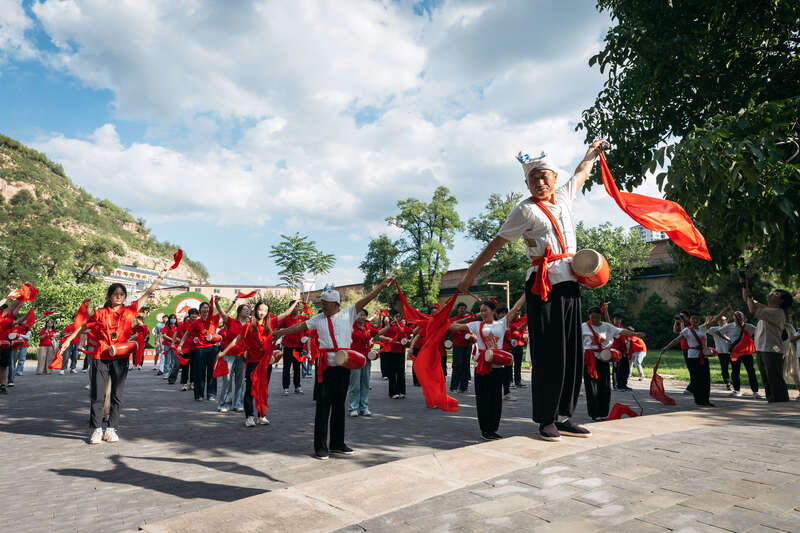 学生们实地体验并感受安塞腰鼓风采。球速体育·(中国)官方网站QIUSU SPORTS/供图