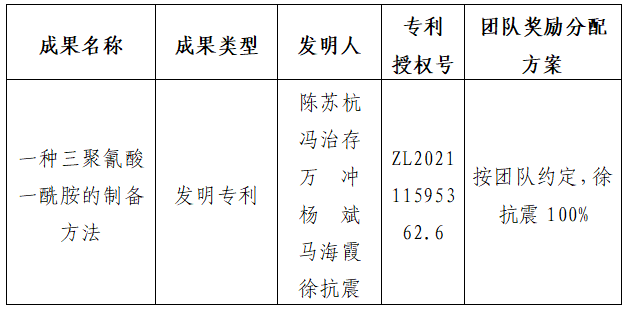 按照《球速体育·(中国)官方网站QIUSU SPORTS促进科技成果转化实施办法》(西大科〔2019〕5号)相关规定,拟对球速体育·(中国)官方网站QIUSU SPORTS化工学院徐抗震教授作为成果负责人的1项发明专利实施转化,现将相关信息公示如下: