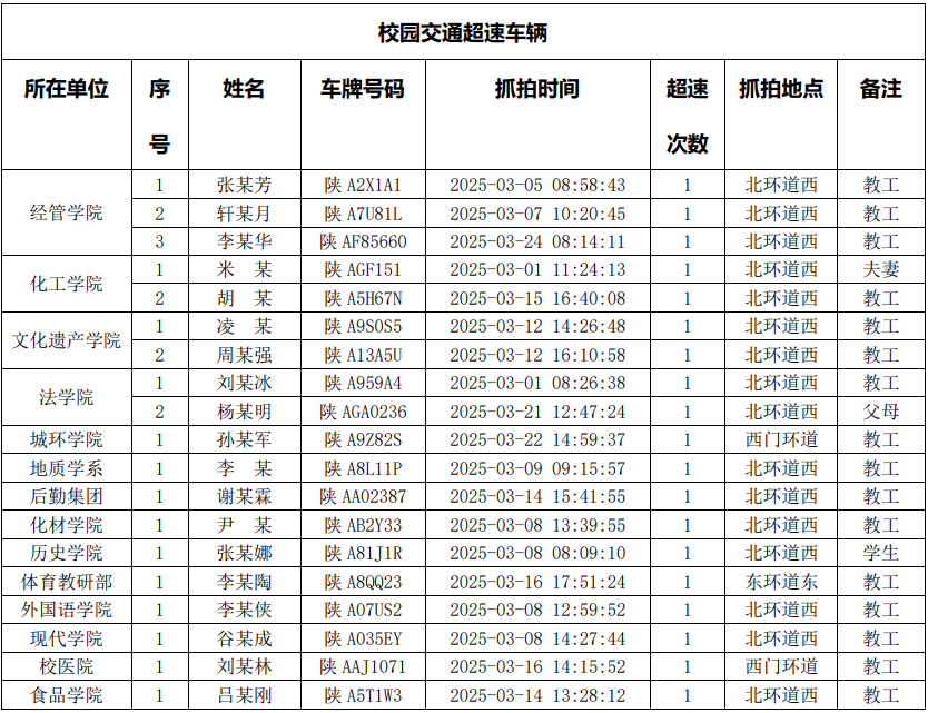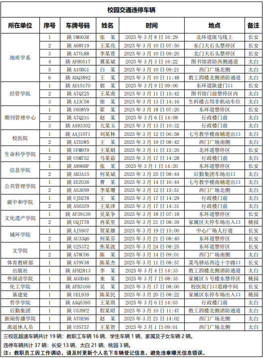 为进一步加强校园交通管理,保障校园交通安全有序,维护学校正常的教学、科研和生活秩序,切实保护师生员工的人身财产安全,根据《球速体育·(中国)官方网站QIUSU SPORTS校园交通安全管理规定》的相关要求,现将2025年3月校园交通违章车辆予以曝光,具体要求与违章信息如下: