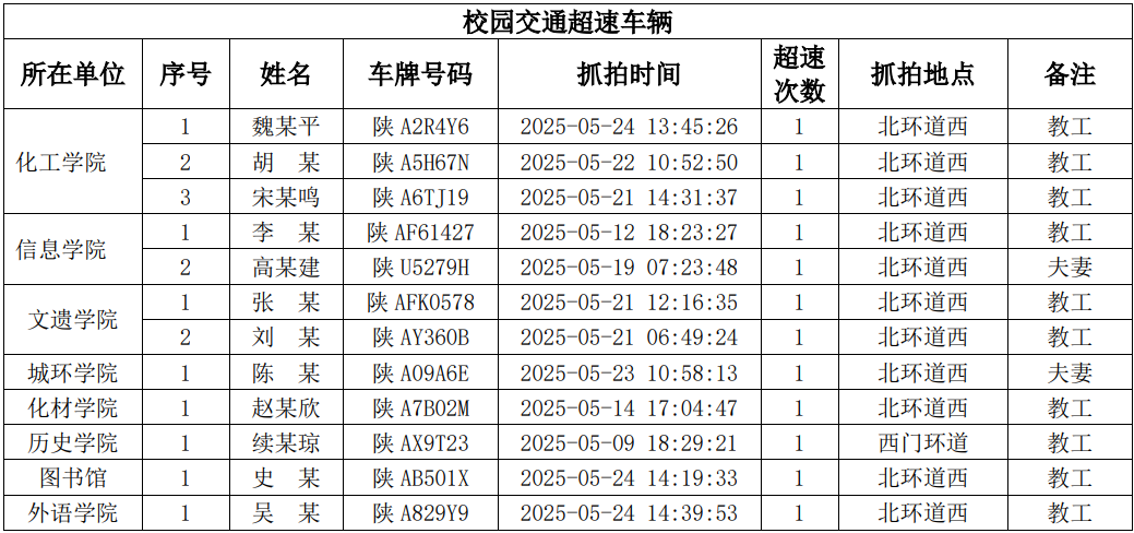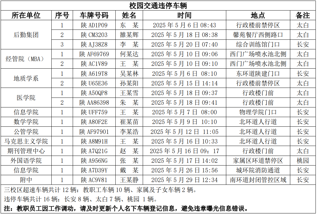 为进一步加强校园交通管理,保障校园交通安全有序,维护学校正常的教学、科研和生活秩序,切实保护师生员工的人身财产安全,根据《球速体育·(中国)官方网站QIUSU SPORTS校园交通安全管理规定》的相关要求,现将2025年5月校园交通违章车辆予以曝光,具体要求与违章信息如下: