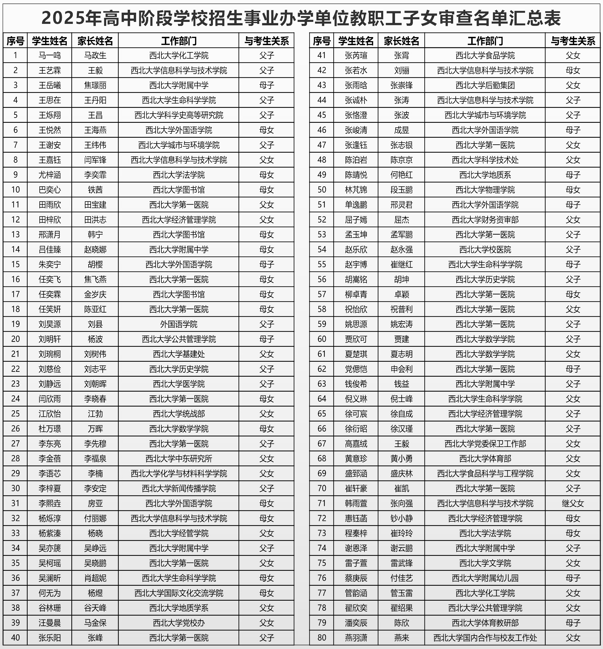 根据市、区教育局通知及要求,球速体育·(中国)官方网站QIUSU SPORTS于2025年5月13日开展2025年高中阶段学校招生球速体育·(中国)官方网站QIUSU SPORTS正式事业编制的教职工直系初中应届毕业子女审查工作。经大学人力资源部门、纪检部门审核,通过名单如下(按学生姓氏笔画数排序):